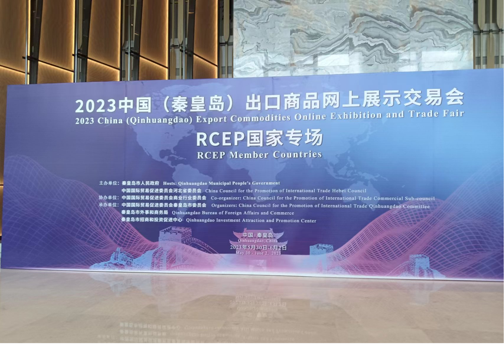 雋銘(河北)機械設備制造有限公司受邀參加了由秦皇島市人民政府河北省貿促會主辦,中國貿促會商業(yè)委員會協(xié)辦的“2023中國(秦皇島)出口商品網上展示交易會RCEP國家專場”活動。開幕式及論壇于5月30日隆重召開。