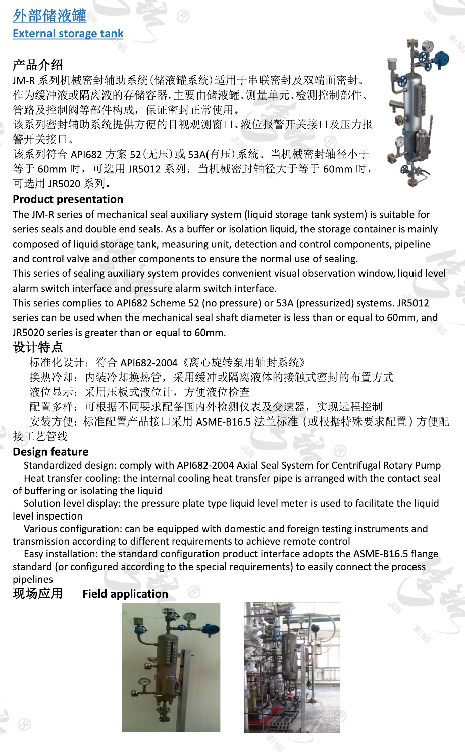 JM-R系列機械密封輔助系統(tǒng)(儲液罐系統(tǒng))適用于串聯(lián)密封及雙端面密封。作為緩沖液或隔離液的存儲容器,主要由儲液罐、測量單元、檢測控制部件、管路及控制閥等部件構(gòu)成,保證密封正常使用。