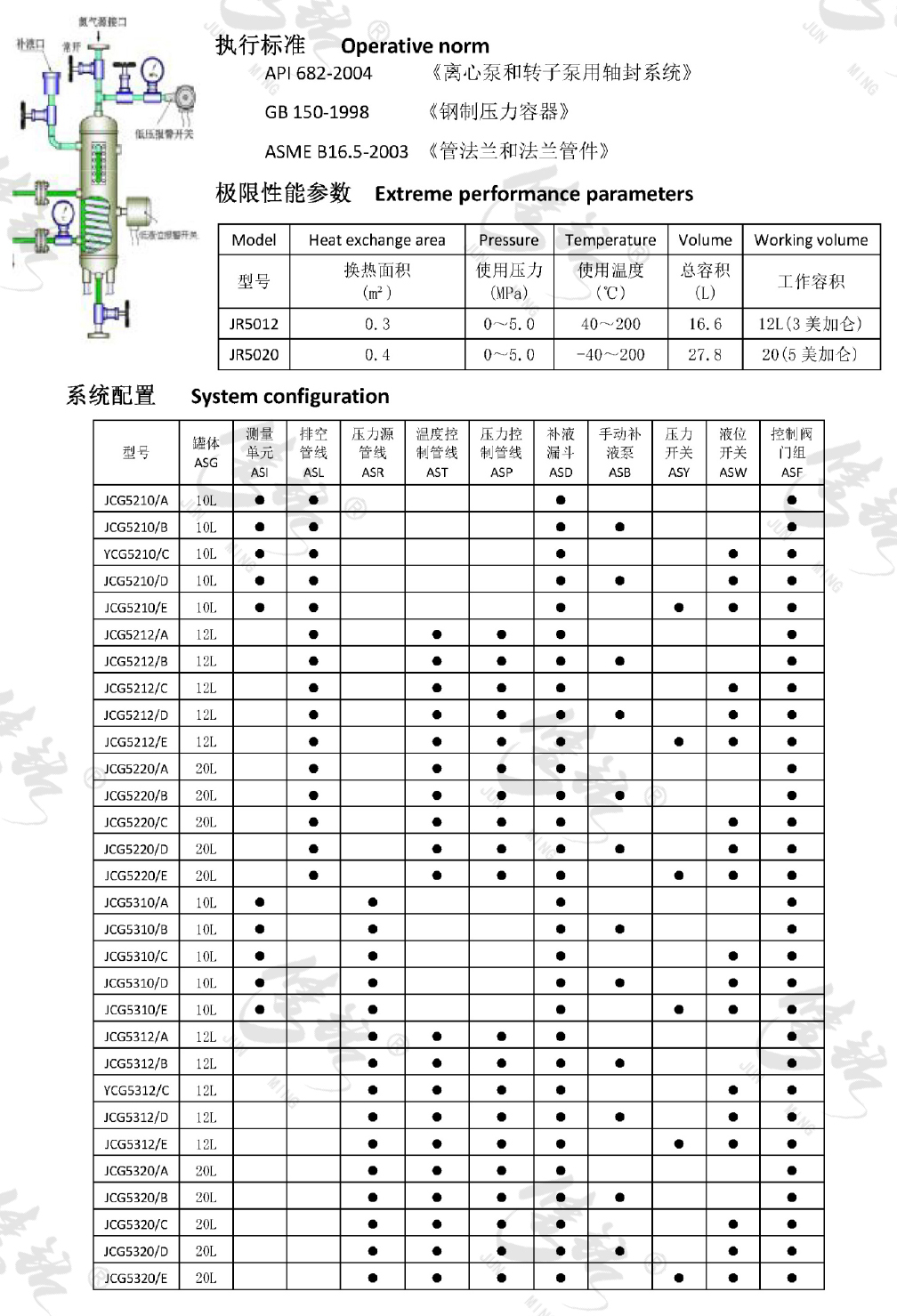 該系列符合API682方案52(無壓)或53A(有壓)系統(tǒng)。當機械密封軸徑小于等于60mm時,可選用JR5012系列;當機械密封軸徑大于等于60mm時,可選用JR5020系列。