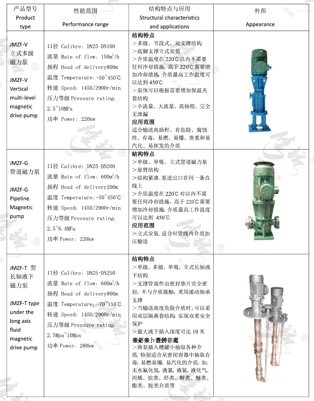 JM系列磁力驅(qū)動(dòng)離心泵一種高效節(jié)能無(wú)泄漏離心泵, 在節(jié)能環(huán)保方面擁有巨大優(yōu)勢(shì)。符合API610標(biāo)準(zhǔn)API685部分標(biāo)準(zhǔn),與國(guó)內(nèi)石化、電力等企業(yè)現(xiàn)有設(shè)備兼容,可進(jìn)行完全的互換。